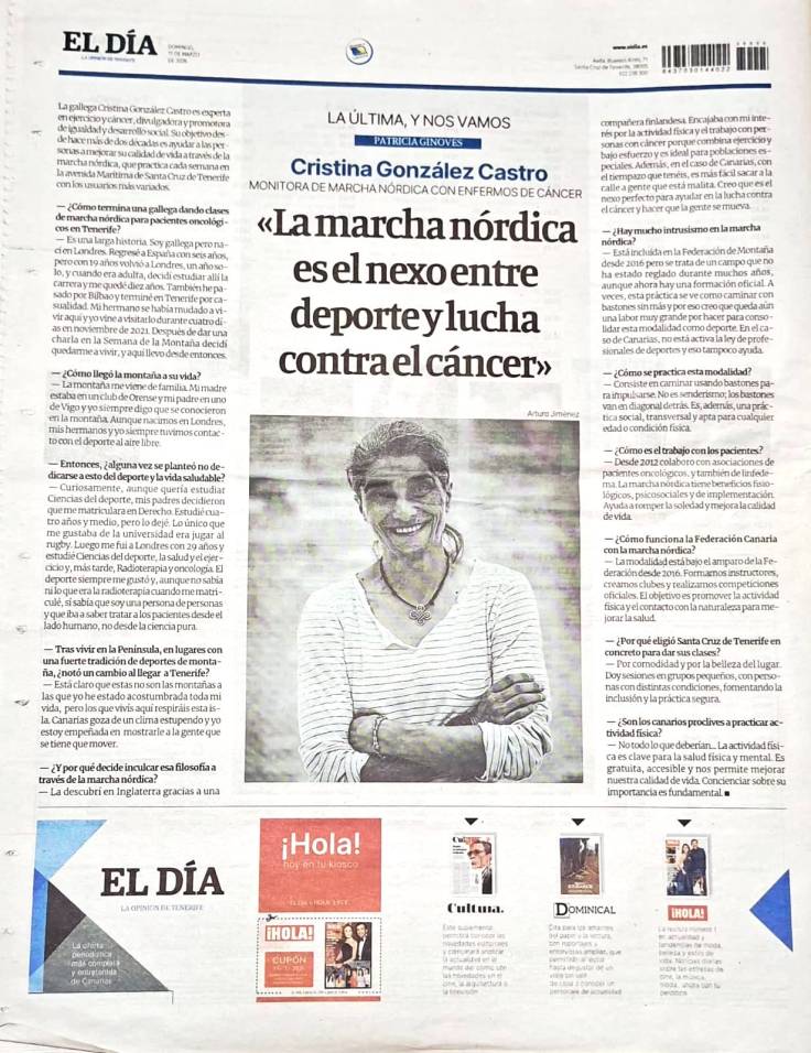 Saludos, me llamo Cristina González Castro, soy experta en ejercicio y cáncer, en marcha nórdica, divulgadora y promotora de igualdad y desarrollo social. Llevo 20 años trabajando con el objetivo de llegar a las personas para mejorar su calidad de vida, espero que pueda ser tu caso.