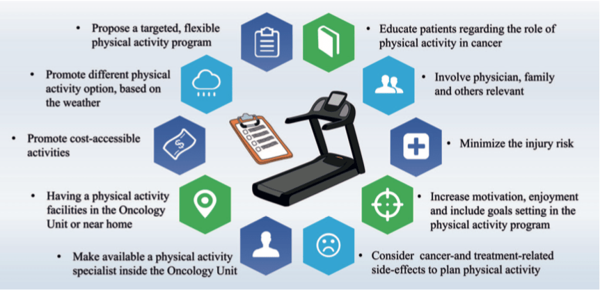 Por último se señalan posibles estrategias para solventar estas barreras y mejorar los niveles de ejercicio físico de pacientes oncológicos: