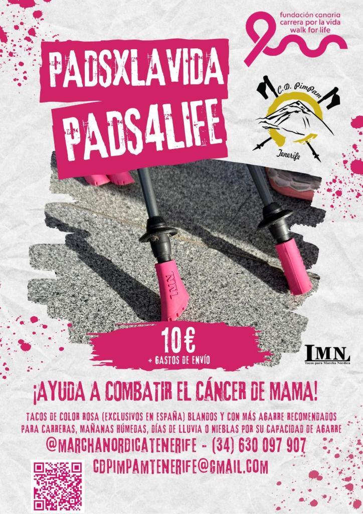 El Club Pim Pam Tenerife Marcha Nórdica en colaboración con Jesús Lodosa lanza esta fantástica iniciativa a favor de la Fundación Carrera Por la Vida. Estos tacos exclusivos tienen muy buen agarre y te harán disfrutar de la marcha nórdica mientras ayudas con una buena causa.