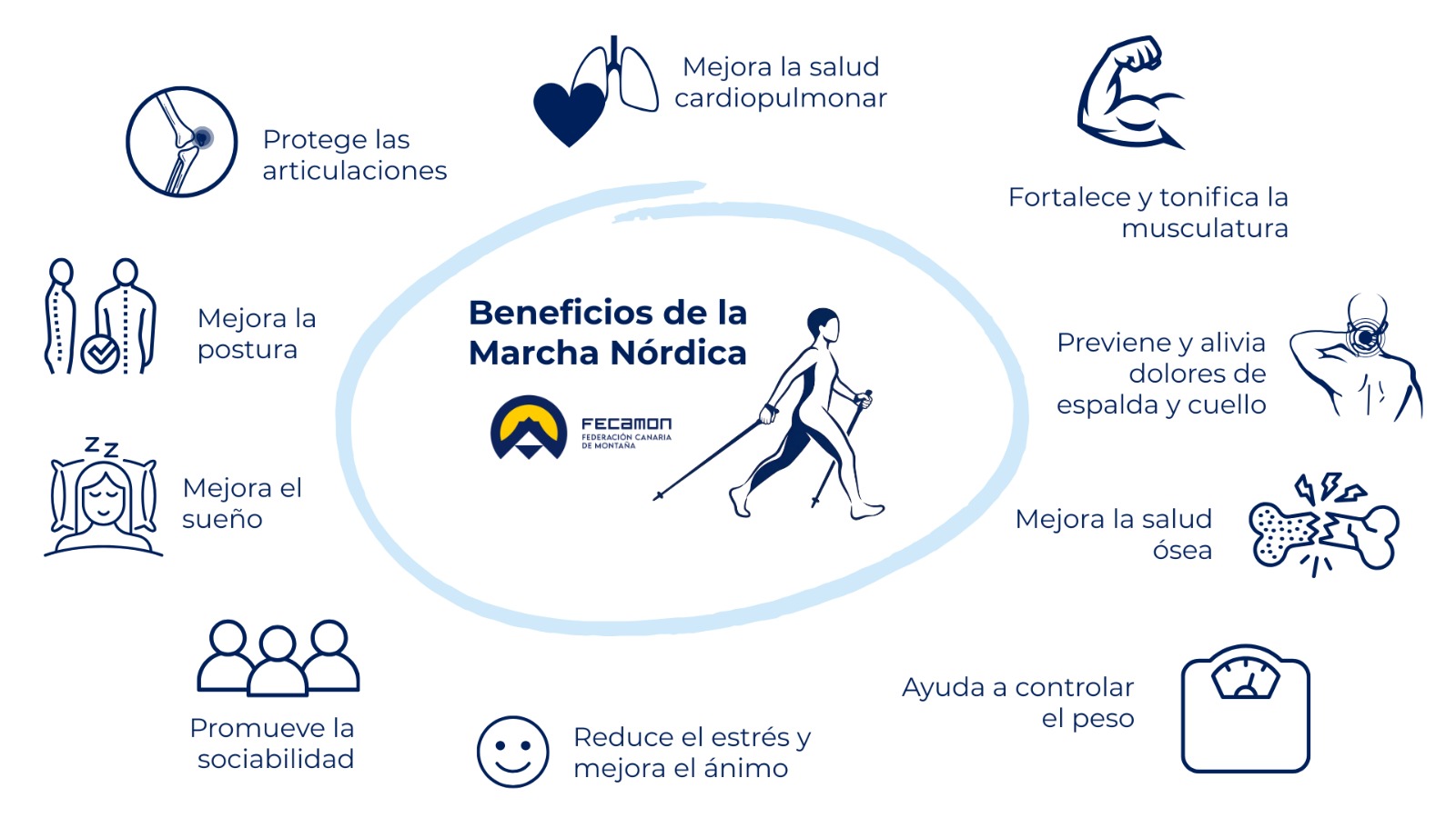 La MARCHA NÓRDICA (Nordic Walking) consiste en añadir el uso de unos bastones a la forma natural de caminar (técnica diagonal o tradicional). Integra la actividad de la parte superior e inferior del cuerpo ya que los bastones no solamente nos sirven de apoyo, como en trekking, sino que nos ayudan a impulsarnos hacia delante.